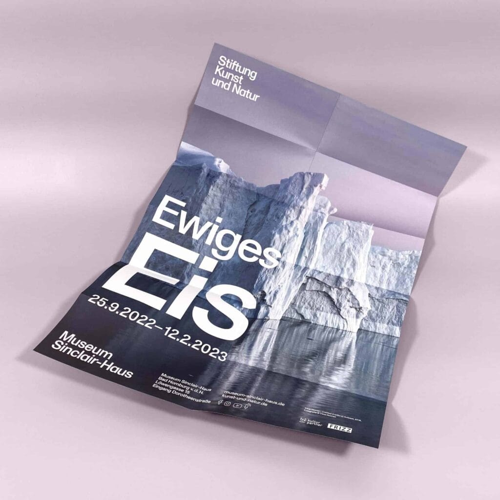 • Key Visual der Ausstellung ist das Ölgemälde von Ian Fisher Atmosphere No. 148 (Waterfall), 2022. In den Ausstellungstitel wird dazu einen Fotografie des Deutschen Wetterdienstes eingespiegelt.